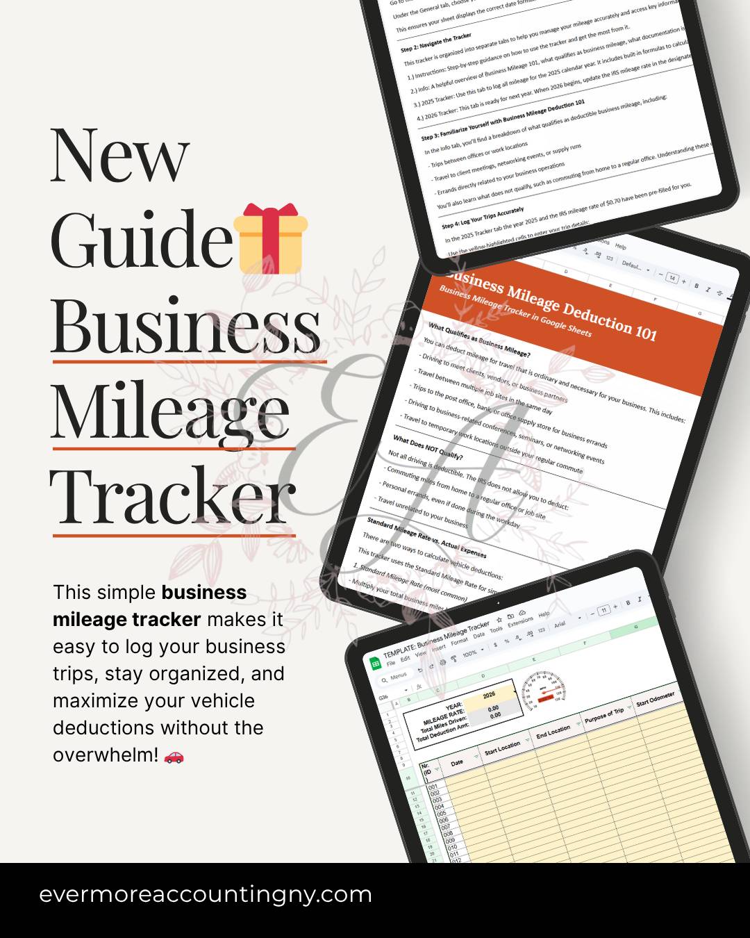 No matter if you're a freelancer, contractor, or consultant, this Business Mileage Tracker + Guide makes it easy to log your trips and maximize your mileage deductions.